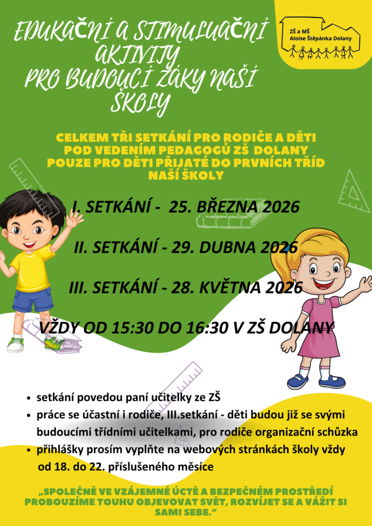 Naše vize: Společně ve vzájemné úctě a bezpečném prostředí probouzíme touhu objevovat svět, rozvíjet se a vážit si sami sebe