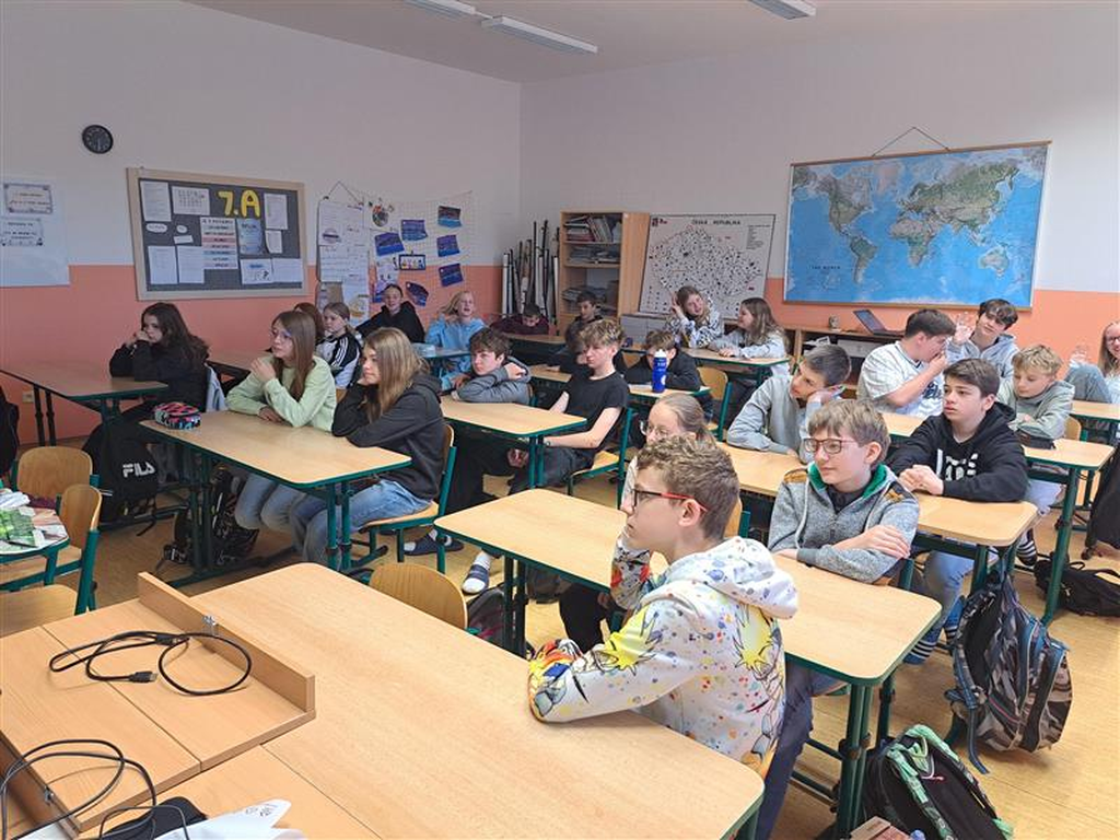 Cyklus letošních zeměpisných přednášek a besed zakončily třídy 7. ročníku besedou o Japonsku. Pozvání do školy přijala Mgr. Petra Halašková, mistryně světa na raftech, která během své bohaté kariéry objela se závody na divoké vodě mnoho míst světa. Na každém z navštívených míst se kromě sportovních výkonů či trénování snažila věnovat i samotnému místu a sbírat poznatky, fotografie a zkušenosti. Do Dolan nám přijela představit Zemi vycházejícího slunce – Japonsko. Kromě fotografií, videí, příběhů a zážitků dovezla také předměty přímo z Japonska. Pro žáky bylo povídání poutavé, se spoustou zajímavostí a vlastních zážitků.