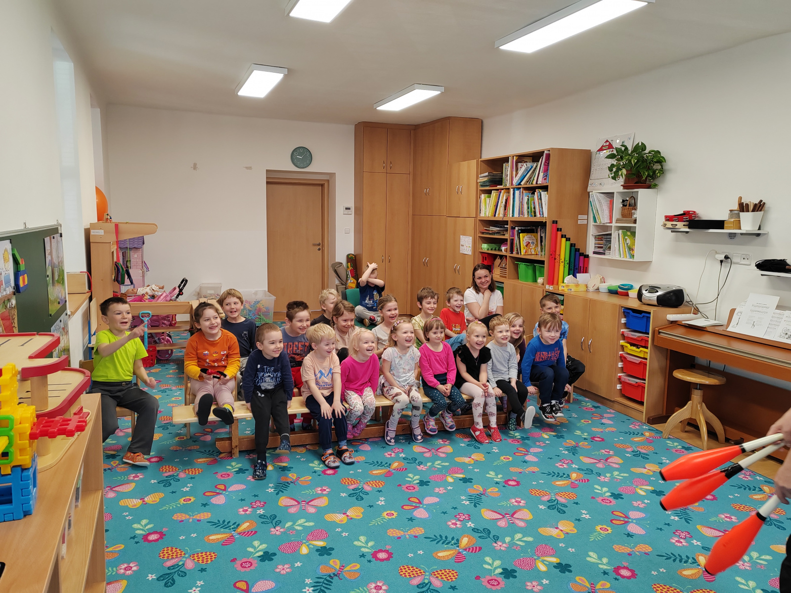 Navštívil nás s divadlem pan Taraba. Jako vždy vtáhl děti do děje své pohádky, zazpívaly si, tancovaly a tentokrát si i s panem Tarabou zacvičily.