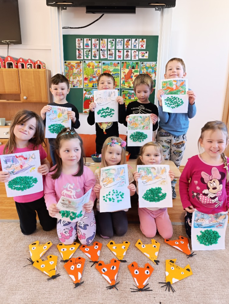 Březen je měsíc knihy a my jsme knihy využily v našem tématu o pohádkách. Děti si nosily vlastní pohádkové knihy a učily se, jak s knihou zacházet, jakým způsobem se čte nebo co všechno můžeme v knihách najít. Kdo je spisovatel a kdo ilustrátor? Co je knihovna? S dětmi jsme navštívili dolanskou knihovnu, kde se dozvěděly spoustu užitečných informací. Ve školce si děti rozvíjely všechny dovednosti pomocí pohádek O Koblížkovi, Červené Karkulce, O Budulínkovi či O kůzlátkách. Cílem bylo v dětech vytvořit kladný a přirozený vztah ke knihám. Následně jsme se s dětmi zaměřili na probouzející se jaro, přírodu a krásu jarních květin. Skrze hravé aktivity, tvoření a prožitkové učení si děti upevnily vztah k přírodě. Na jarní čas jsme navázali Velikonocemi, kdy se děti seznámily s lidovými tradicemi a zvyky.