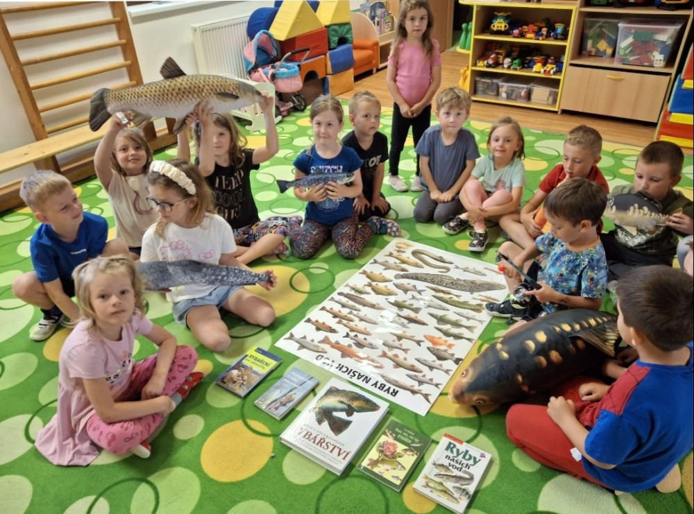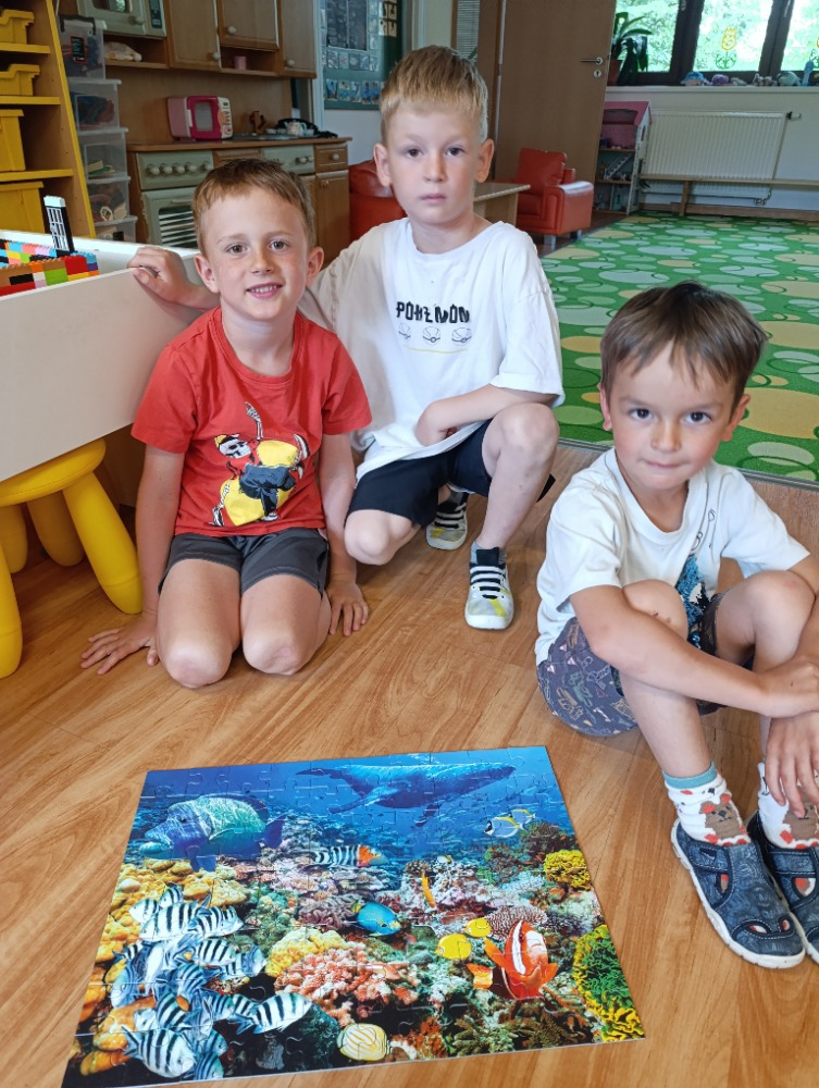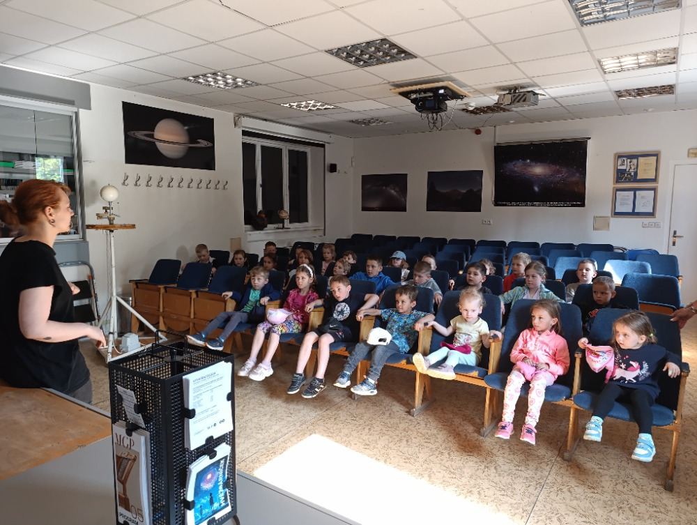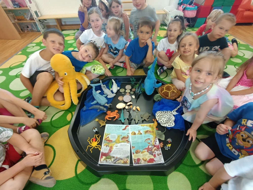 Měsíc červen jsme měli plný putování a cestování. S dětmi jsme se vydali po stopách vesmíru, planet ,galaxií a komet. Děti se také seznámily s částmi skafandru a s tím, co je potřeba k úspěšnému letu do vesmíru. Naše cesta vesmírem byla podpořena výletem do hvězdárny v Prostějově. Následně jsme cestovali po všech ZOO v České republice a seznamovali se se zvířaty, která v nich žijí. Povídali jsme si také o životě v rybníku a kolem něj. V poznávání nám pomohl kamarád Vašík, který dětem vysvětlil, na co se ryby chytají, jaké jsou návnady, vyprávěl podle knih a učil děti názvy nejznámějších ryb. Vašík podal dětem ucelené informace a svým výkladem a vyprávěním zážitků děti velmi zaujal. S dětmi jsme se také ponořili do světa moří a oceánů. Objevovali jsme mořské dno a obyvatele žijící v moři a povídali jsme si o ochraně životního prostředí.
