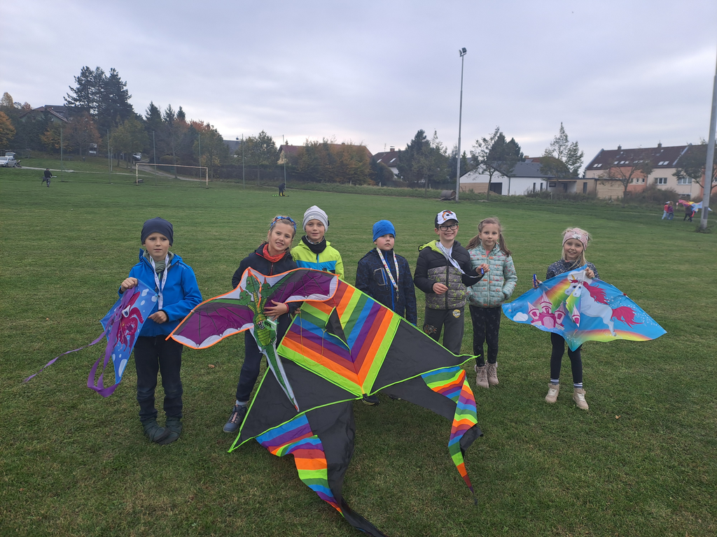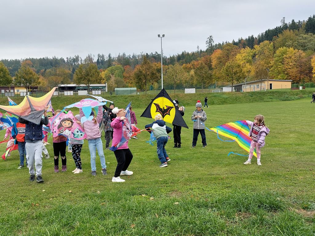 Jeden z říjnových týdnů jsme v I., II. a IV. oddělení ŠD věnovali drakiádám. Podzimní počasí si s námi sice trochu zahrávalo, ale lehký vítr na sebe nenechal dlouho čekat a tak naši draci mohli vyletět vzhůru. Na obloze se tak vznášeli nádherní draci, všech tvarů a velikostí. I když jsme občas bojovali se zamotanými provázky a leností některých dráčků, děti si navzájem pomohly a akci tak můžeme považovat za vydařenou.