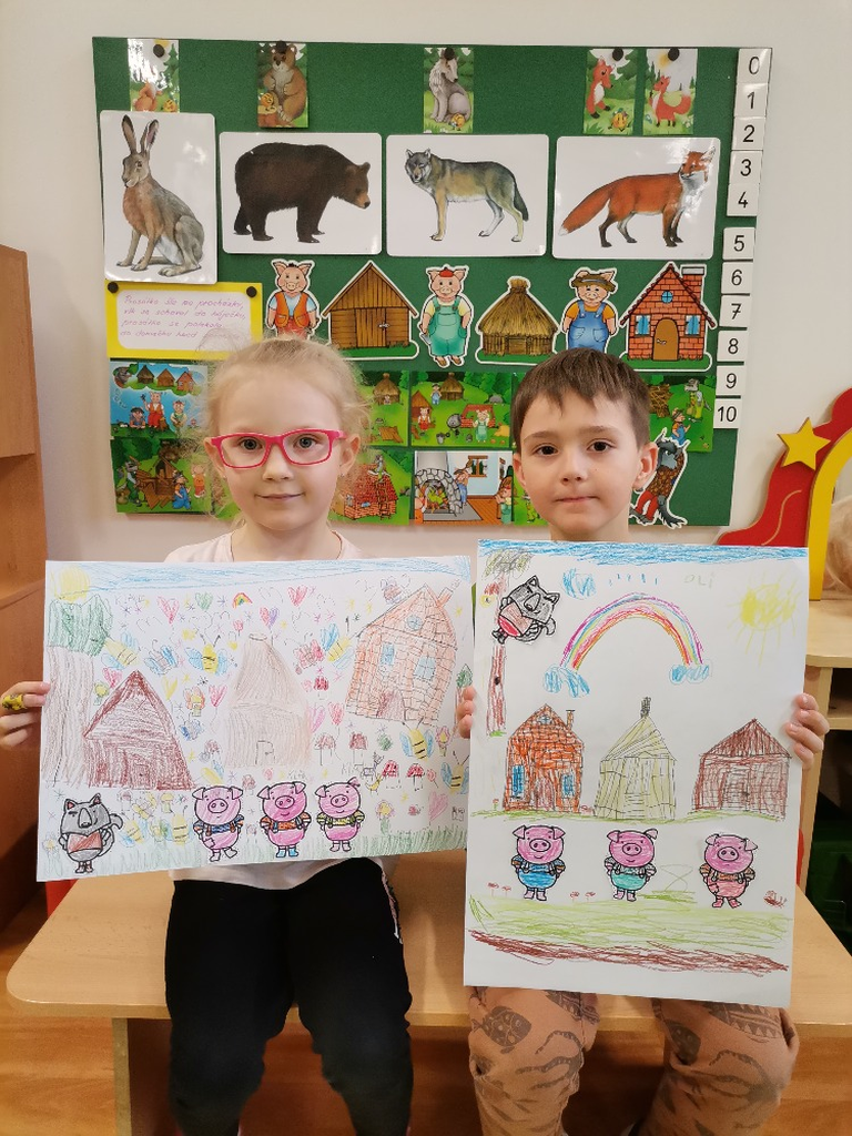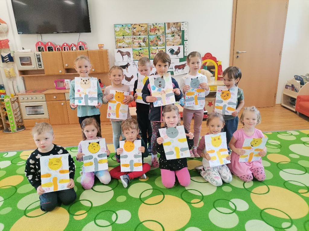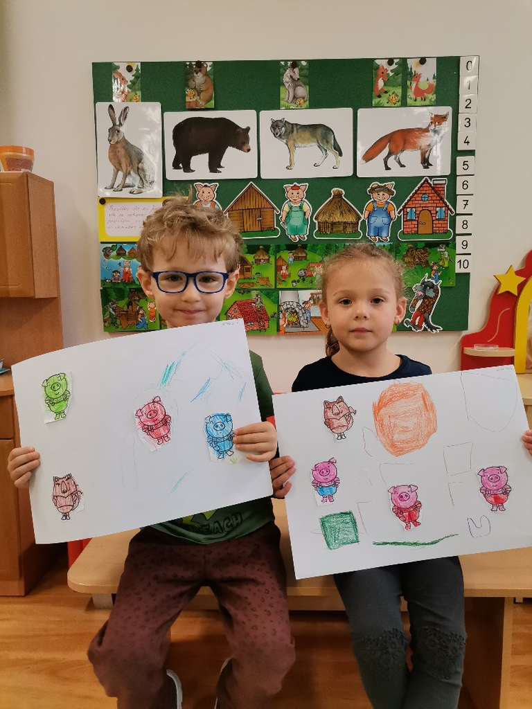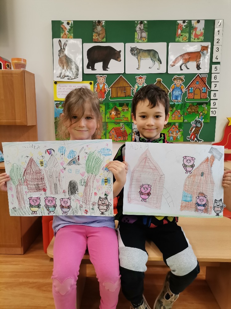 Pohádkový svět je plný postav a fantazie. Do tohoto světa jsme se s dětmi zatoulali. Potkali jsme Koblížka a tři prasátka. Dva týdny jsme si povídali o různých pohádkách – z večerníčků, o veršovaných pohádkách, prohlíželi jsme knihy a leporela s pohádkami a opakovali obsahy různých pohádek. Děti si pohádky O Koblížkovi a prasátkách zdramatizovaly a všechny úkoly a činnosti byly motivovány právě těmito pohádkami. V tomto měsíci jsme také navštívili Městskou knihovnu v Olomouci motivovanou pohádkou Kamil neumí létat. Následující týdny jsme si povídali na téma: Jak to chodí na dvorku. Hravou formou jsme u dětí podporovaly získávání vědomostí o hospodářských zvířatech – umět pojmenovat, určit jejich zvuk, kterým se zvíře dorozumívá. Seznamovaly se s mláďaty a jejich vzhledem, kdo ke komu patří. V týdnu jsme navštívili statek v Toveři, kde děti krmily koníky, sypaly zrní slepicím, hladily králíky a hledaly schovanou kočku. Děkujeme Emičce U. a její mamince za ukázku králíčků Elinky a Šimona.