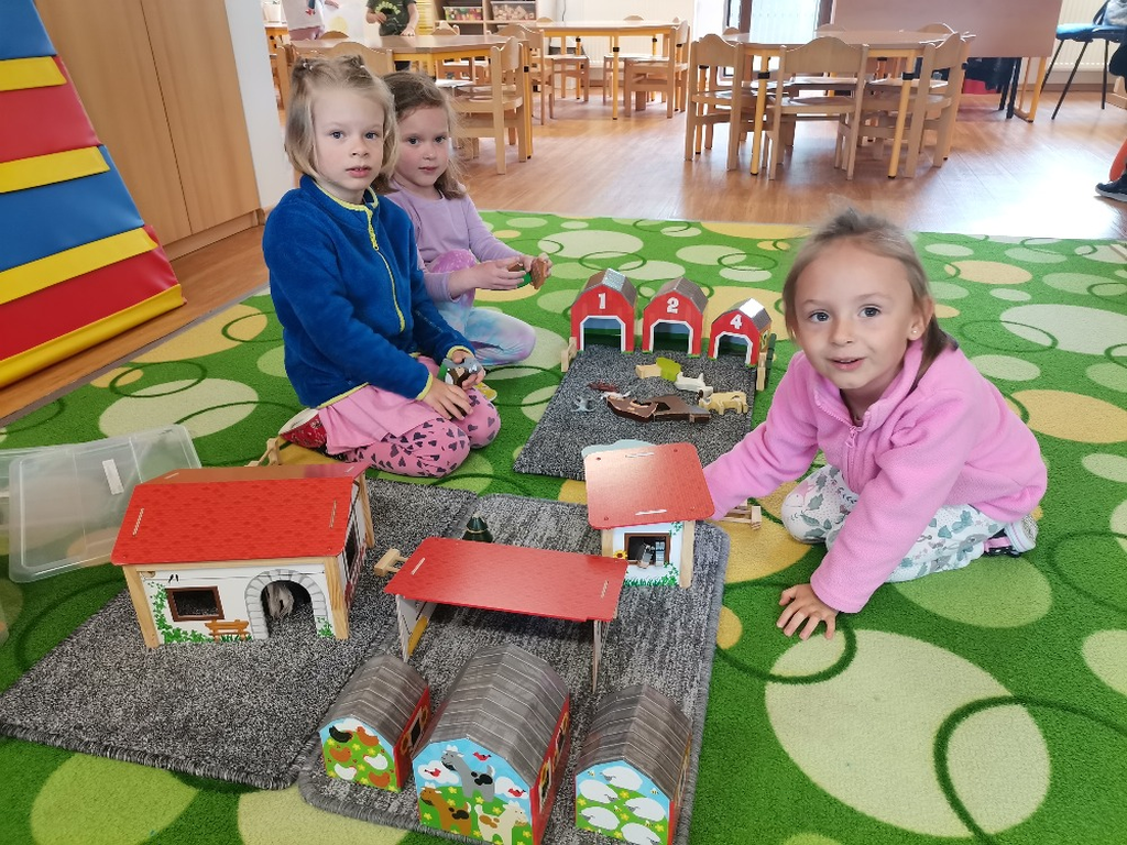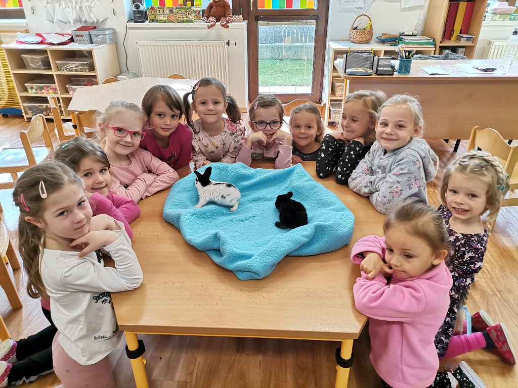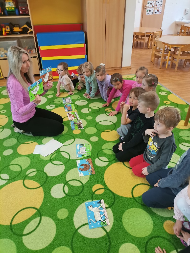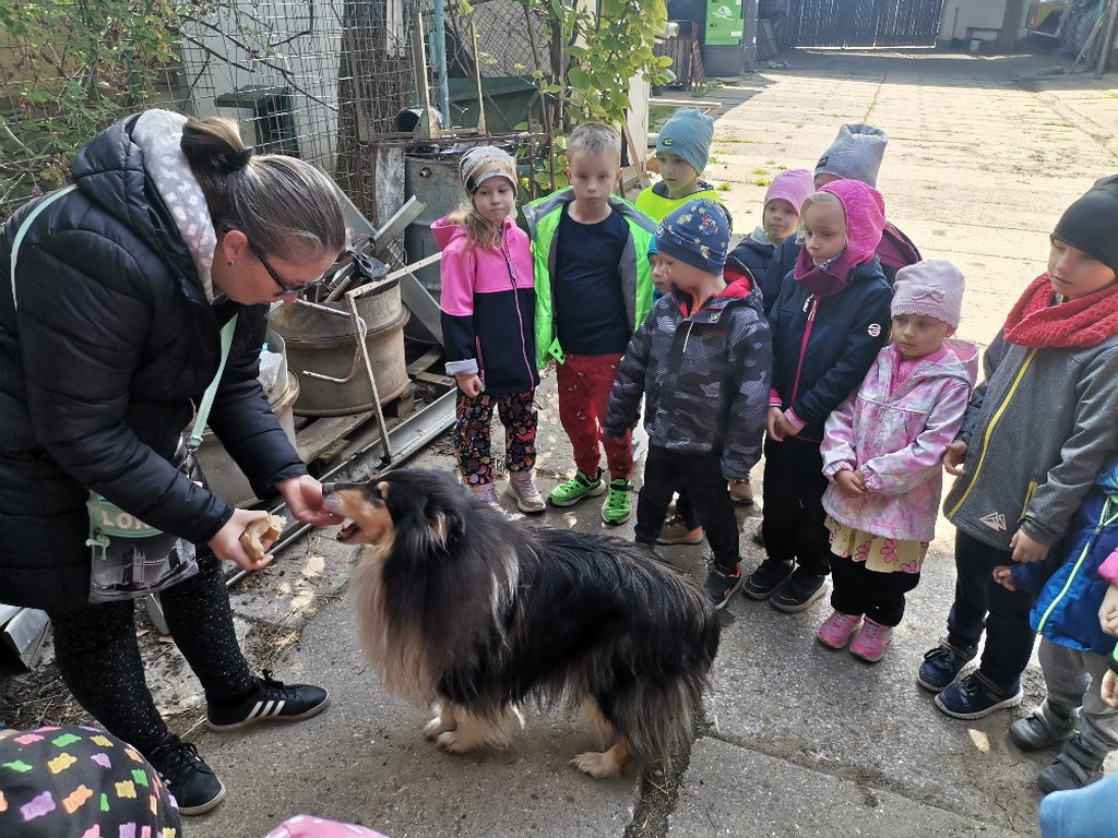 Pohádkový svět je plný postav a fantazie. Do tohoto světa jsme se s dětmi zatoulali. Potkali jsme Koblížka a tři prasátka. Dva týdny jsme si povídali o různých pohádkách – z večerníčků, o veršovaných pohádkách, prohlíželi jsme knihy a leporela s pohádkami a opakovali obsahy různých pohádek. Děti si pohádky O Koblížkovi a prasátkách zdramatizovaly a všechny úkoly a činnosti byly motivovány právě těmito pohádkami. V tomto měsíci jsme také navštívili Městskou knihovnu v Olomouci motivovanou pohádkou Kamil neumí létat. Následující týdny jsme si povídali na téma: Jak to chodí na dvorku. Hravou formou jsme u dětí podporovaly získávání vědomostí o hospodářských zvířatech – umět pojmenovat, určit jejich zvuk, kterým se zvíře dorozumívá. Seznamovaly se s mláďaty a jejich vzhledem, kdo ke komu patří. V týdnu jsme navštívili statek v Toveři, kde děti krmily koníky, sypaly zrní slepicím, hladily králíky a hledaly schovanou kočku. Děkujeme Emičce U. a její mamince za ukázku králíčků Elinky a Šimona.