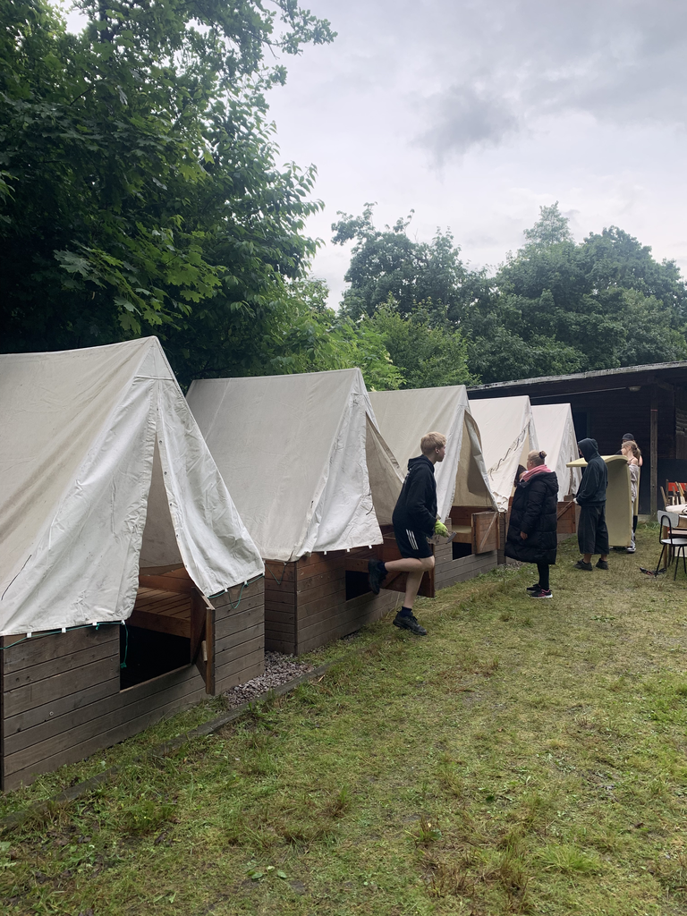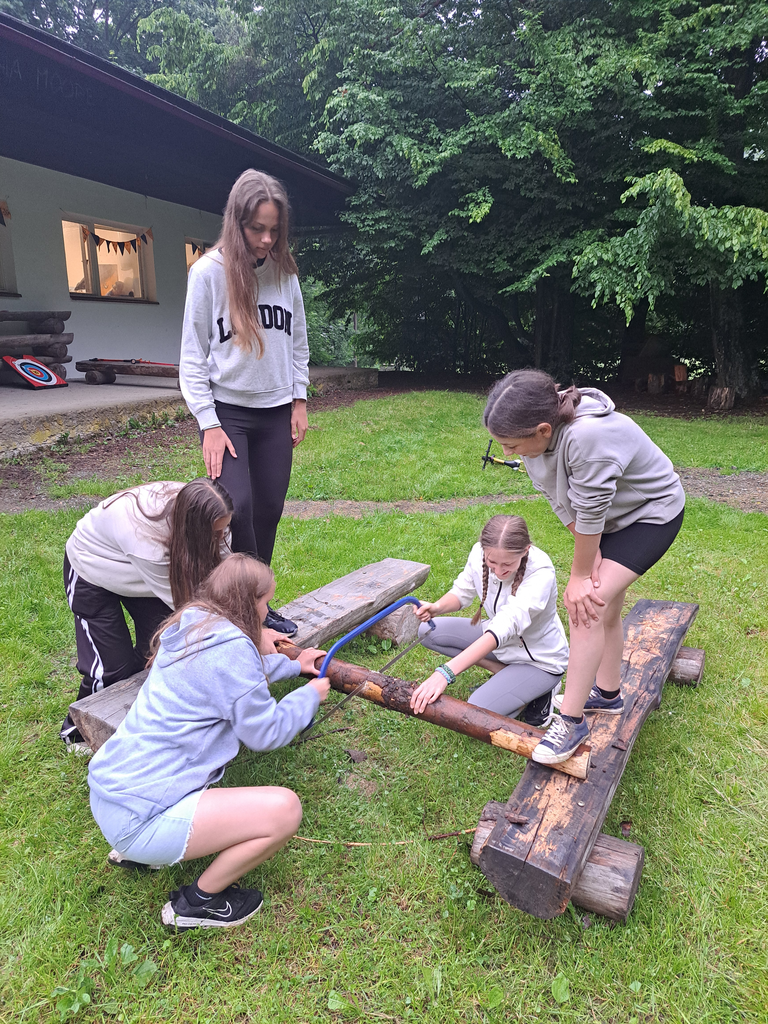 V rámci environmentálního vzdělávání na naší škole se třída 8.B vydala na ekologický pobyt na táborovou základnu v Hněvkově. Plánované stavění stanů a program prvního dne celkově nám zhatila nepřízeň počasí a nevyzpytatelný déšť. Všichni se ale zvládli zabavit sportem, deskovými hrami či společným vařením. V podvečer déšť ustal a vrhli jsme se na stavění stanů. Do večera bylo postaveno a bylo kde spát. A ještě jsme stihli krátký táborák. Noc byla chladnější, spánek byl doprovázen zvukem protékající řeky Moravské Sázavy a projíždějících vlaků na hlavním železničním koridoru. Druhý den vyšlo počasí daleko lépe. Po vydatném obědě proběhli dva ekologické programy, jeden se zaměřením na ekologii vody a druhý na ekologii lesa. Žáci porovnávali různá stanoviště, všímali si vztahu živé a neživé přírody, zhodnotili kvalitu vody a biodiverzitu v lese. V mezičase se hrál volejbal, střílelo se z luku, šlo se na dřevo, vařilo se a umývalo se. Na nudu čas opravdu nebyl.
