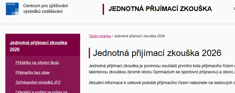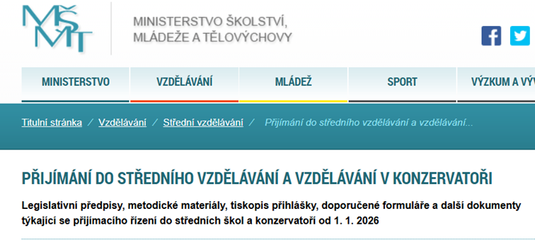 Informace k přijímacím zkouškám na střední školy 2026/2027