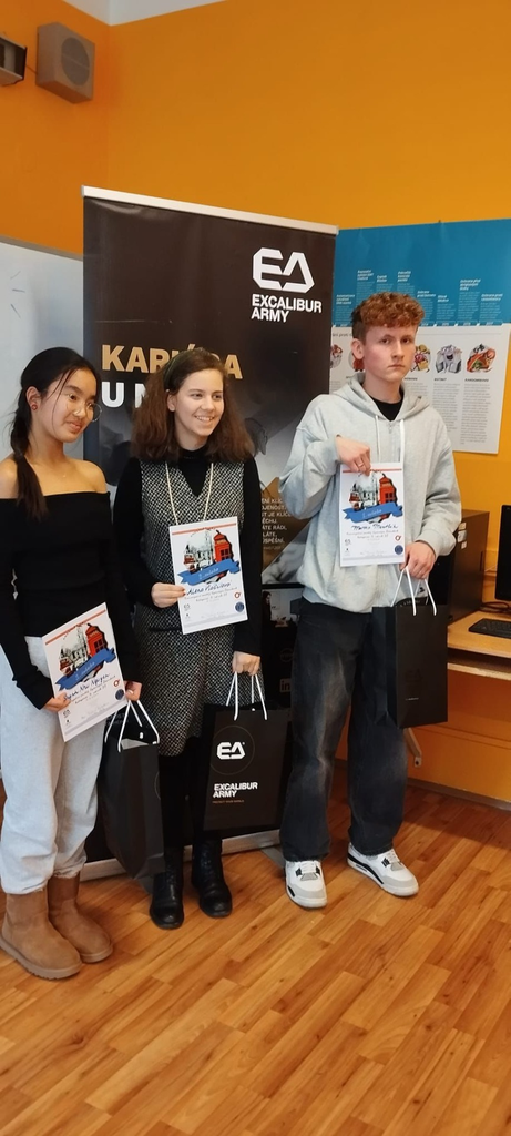 Ve čtvrtek 19. prosince se žáci Barbora Dlabajová, Martin Mentlík (oba 9.B) a Anna Kloučková (8.A) zúčastnili konverzační soutěže v anglickém jazyce, která se konala na Gymnáziu Šternberk.Všichni žáci nejprve absolvovali první kolo, jež zahrnovalo poslech a popis obrázku. Do dalšího kola, kam postoupilo osm nejlepších účastníků, se probojovali i naši zástupci. Druhé kolo zahrnovalo diskuzi na vylosované téma a Martin Mentlík zde předvedl skvělý výkon, za který si právem odnesl 1. místo.Tímto všem gratulujeme k jejich skvělému výkonu a děkujeme jim za vzornou reprezentaci školy.