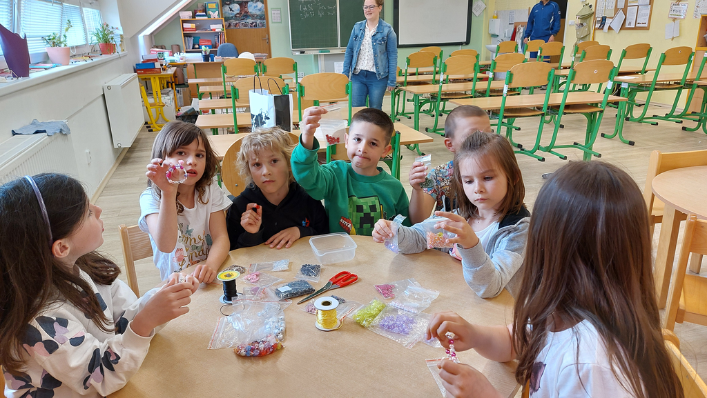 Ve středu 7.5.2025 v II. oddělení školní družiny proběhla akce „korálkování“. Děti si vyrobily z korálků náramek nebo přívěšek na klíče. Vybírat mohly ze spousty krásných korálků různých velikostí a barev. K dispozici měly i ozdobné přívěšky a doplňky. Dětem se velice dařilo a vznikly opravdu krásné výrobky. Moc děkujeme paní Matonohové, která nám skvělé tvoření umožnila a těšíme se na další.