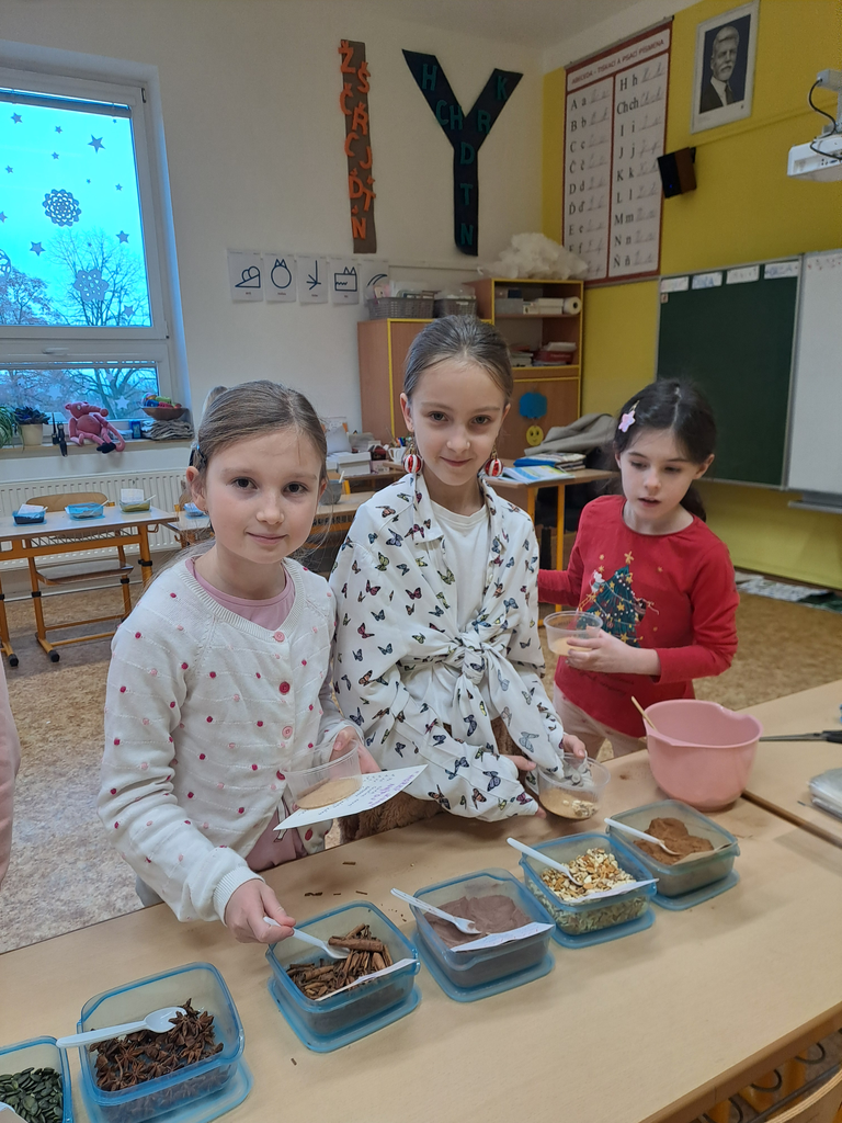 V minulých dnech proběhla ve všech odděleních školní družiny akce s názvem „Koření“. Přijela za námi paní Bernasová, které dovezla kvalitní voňavé koření. Děti si vždy vybraly recept na konkrétní pokrm a podle postupu si plnily pytlíčky s kořením. Nakonec každé koření dozdobily a připsaly vzkazy. Žáci byli s touto akcí spokojeni a krásně jsme si navodili vánoční atmosféru. Mějte pěkné předvánoční období.