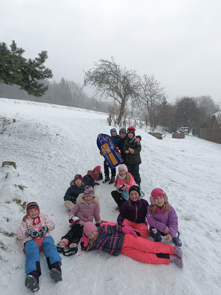 Lednové počasí konečně přálo zimním radovánkám ve sněhu. Hned od prvního družinového dne v Novém roce 2026 jsme trávily čas na kopci nad Dolanami na sněhu. Děti lopatovaly, jezdily na bobech, stavěly sněhuláka, koulovaly se a prostě řádily ve sněhu. V lednu jsme takto strávili celkem jedenáct dní a to se nám v družině nepoštěstilo pěknou řádku let. Třeba není sněhu konec a ještě se ho dočkáme. Každopádně i bez něj se umíme v zimě zabavit. Tvořením, hraním her a spoustou zábavy. Přeji Vám krásně jarní prázdniny.