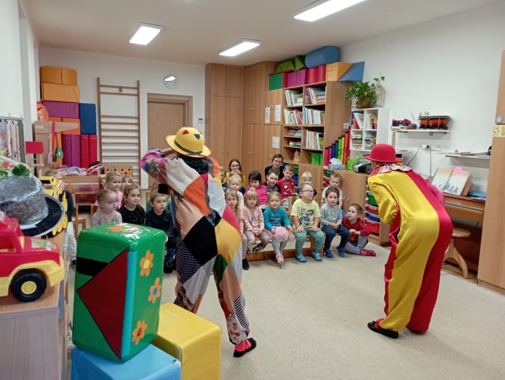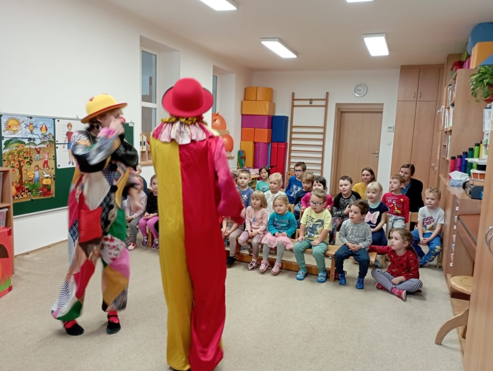 A je tu listopad! Čas neúprosně letí. I my máme za sebou vyprávění o „Dušičkách“ a vzpomínku na naše nejbližší, které debata to nebyla jen smutná, ale i jsme zavzpomínali co kdo měl rád a co by ho potěšilo. 2.11. jsme šli dát svíčky na hřbitov v Dolanech, kde některé děti daly svíčky nejen na hrob rodiny, ale také na hroby o které se již nikdo nestará. Další týden k nám přijelo divadlo paní Janečkové s představením „Klauniáda“. Bylo slyšet soustu smíchu a všude zábava. Děti si zahrály s padákem a zapojily se do příběhu. Jako loni, tak i letos přijely paní doktorky – fyzioterapeutky, z Olomouce, Železniční nemocnice Agel, na kontrolu chodidel a celkového držení těla. A co nás čeká v naší školce v prosinci? Jako první bude rozsvícení vánočního stromu, ale o tom v dalším článku.