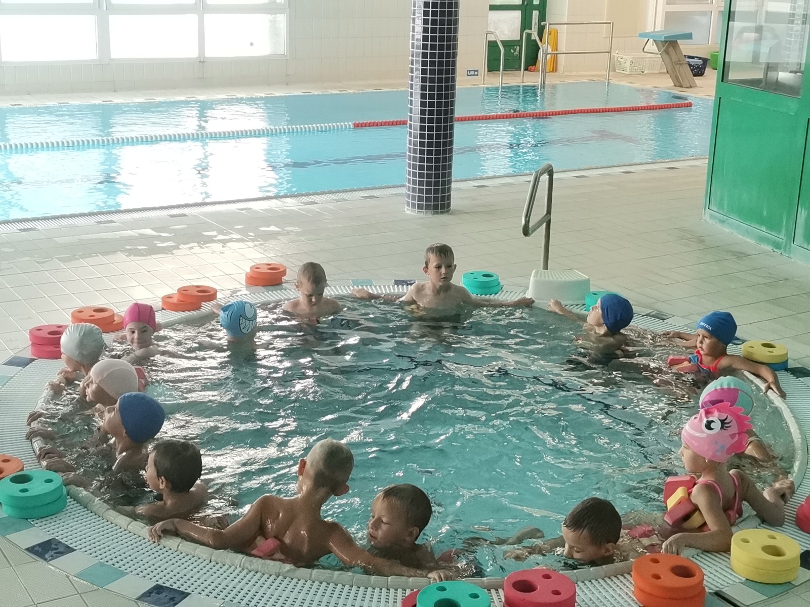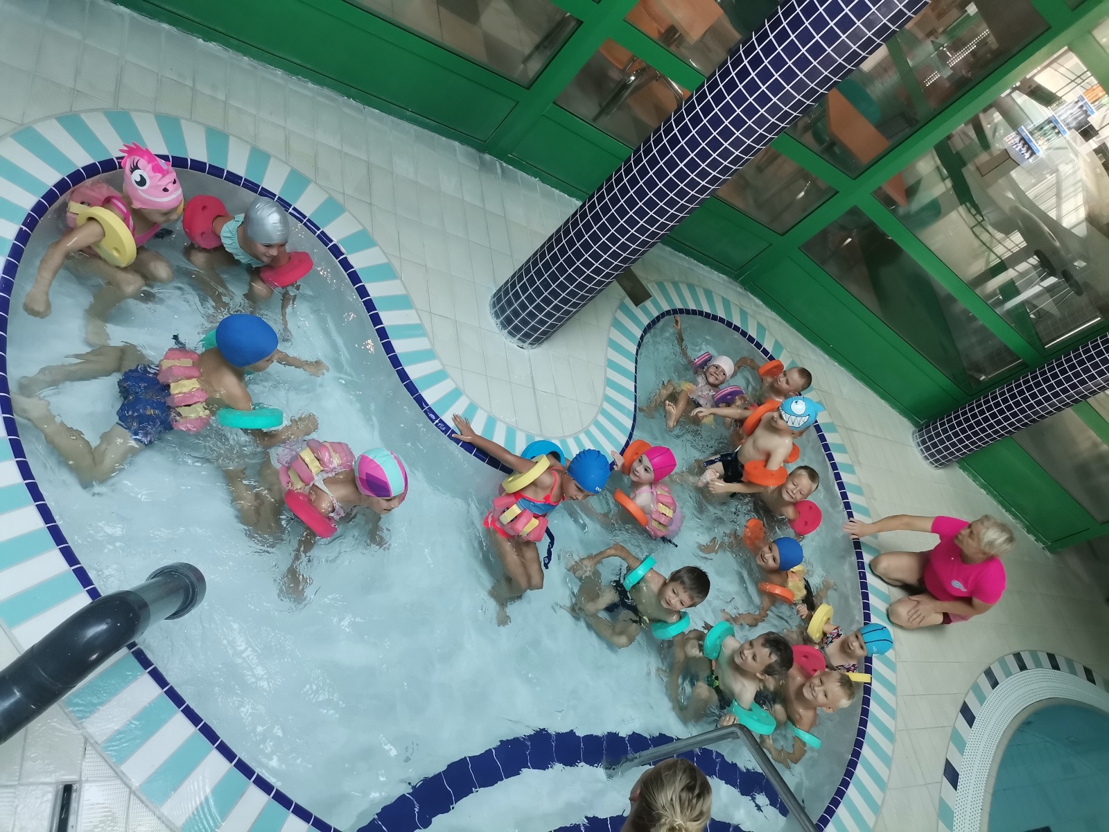 První plavecká hodina proběhla ve středu 13.září v Bohuňovicích. Děti byly výborně připravené a hlavně se již od rána těšily, co všechno je čeká. Děti se seznámily s trenérkami, celým prostorem plaveckého bazénu a bezpečnostními pravidly. Svoji výuku začaly v tzv. ledvince, kde ukazovaly, jak krásně bublají do vody, potápí hlavičky a splnily úkol, kdy třídily obrázky podle barviček. Zaplavaly si ve větším bazénu a relaxovaly ve vířivce. Hodina končila nástupem, kdy byly děti pochváleny.
