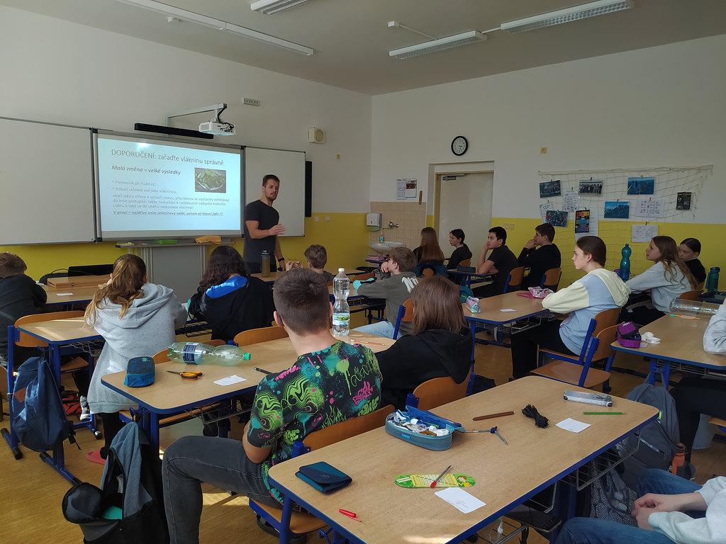 Začali jsme ve třídách zhlédnutím prezentace o prevenci obezity. Následovala živá diskuse o vlivu obezity na zdraví. Dále jsme pracovali ve skupinkách na různých úkolech – tvořili jsme tématické plakáty, připravovali si zátěž a také Velikonoční pátračku pro žáky prvního stupně. Pak nás čekal parkourový seminář s možností vyzkoušet si nějaké základní triky pod vedením těch nejlepších z oboru. Následně jsme se odebrali ven a vyzkoušeli jsme si chůzi (a někteří i běh) s připravenou zátěží v okolí Dolan.