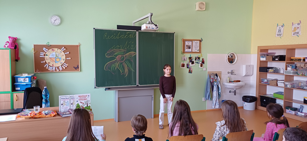Naše základní škola připravila pro děti 1. stupně recitační soutěž, která se uskutečnila 29. února 2024. Soutěžilo 30 žáků prvních až pátých tříd. Povzbuzovat je přišly děti ze školních družin, které vytvořily veselou a tvůrčí atmosféru. Soutěžící hodnotila pětičlenná odborná porota a vybrala následující žáky :