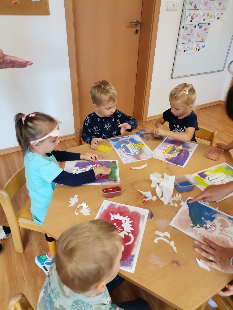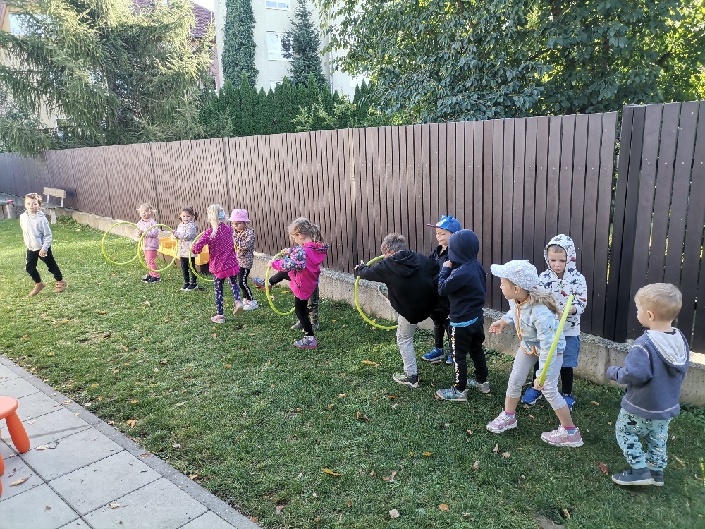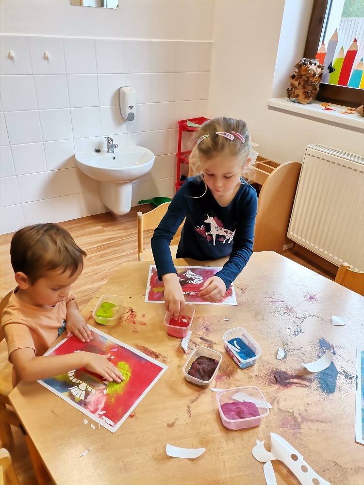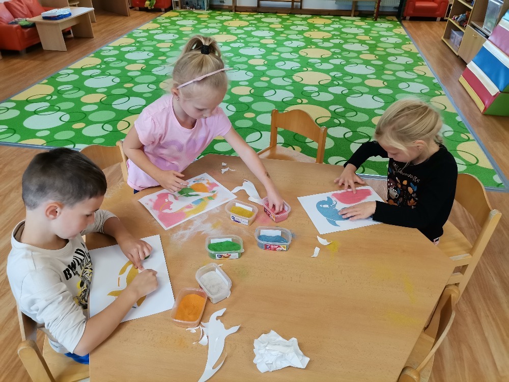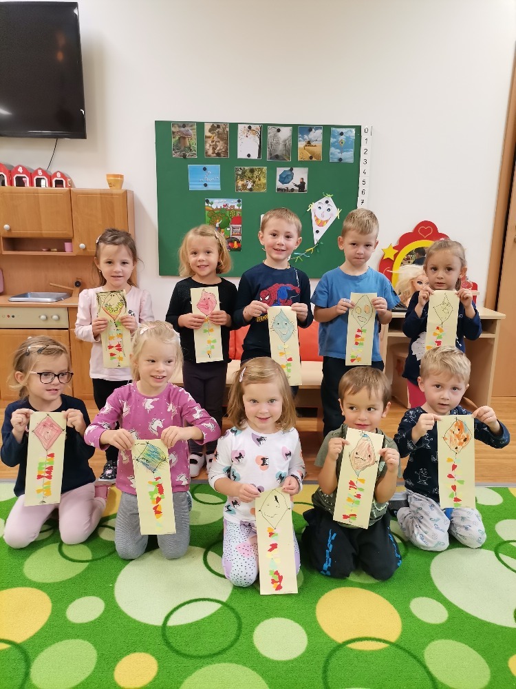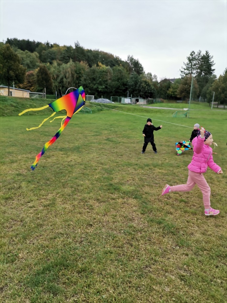 V tomto měsíci se děti díky vlaštovce Ivetce seznámily s druhy  ptáků, kteří se na zimu přesouvají do teplých krajin. Vlaštovka dětem předala spousty nejrůznějších informací o životě ptáků, jejich potravě a přípravě na odlet. Přálo nám počasí, proto jsme si na ptáčky mohli zahrát a zacvičit na školní zahradě. Svůj život nám také představil ježek Bodlinka – čím se živí, k čemu ježkům slouží bodliny, jak se ježci připravují na zimu. Děti diskutovaly nad tématem: “Co by dělaly, kdyby ježka našly.” V následujícím tématu jsme si povídali o dracích a nejen pohádkových. S tématem děti seznámila pohádka Proč se draci smějí.” Uskutečnila se také drakiáda za účasti rodičů, která se povedla. Ve školce proběhla výtvarná činnost – pískování. Děti tvořily různé obrázky, kombinovaly barevné písky a tak vznikla nádherná díla. E. Mazalová