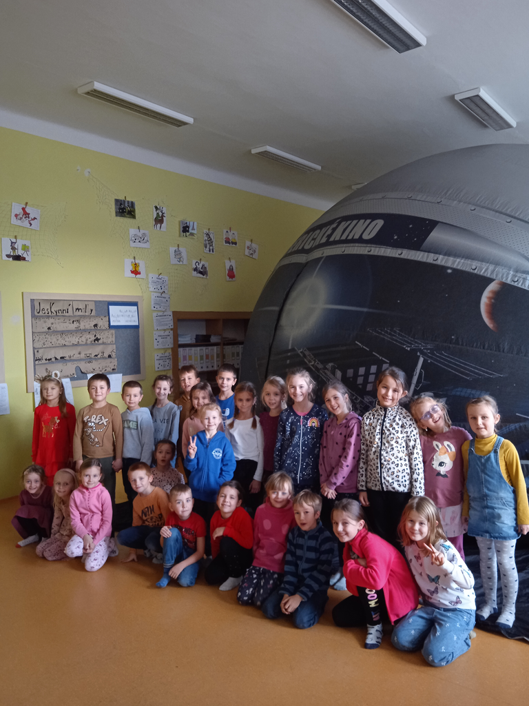 V úterý 12. prosince k nám do družiny přijelo sférické kino s promítáním filmů pro děti v uzavřené kopuli. Promítání probíhalo v leže a s pohyblivým obrazem. Postupně se vystřídala všechna oddělení školní družiny a děti shlédly filmy o podmořském světě, lidském těle a o severním a jižním pólu a o naší sluneční soustavě. Díky pohyblivému obrazu se děti do pohádky úplně zabraly a pak velmi šikovně reagovaly na připravené doplňující otázky od paní animátorky. Dětem se program líbil a mají slíbeno, že si sférické kino do družinky pozveme i v příštím pololetí.