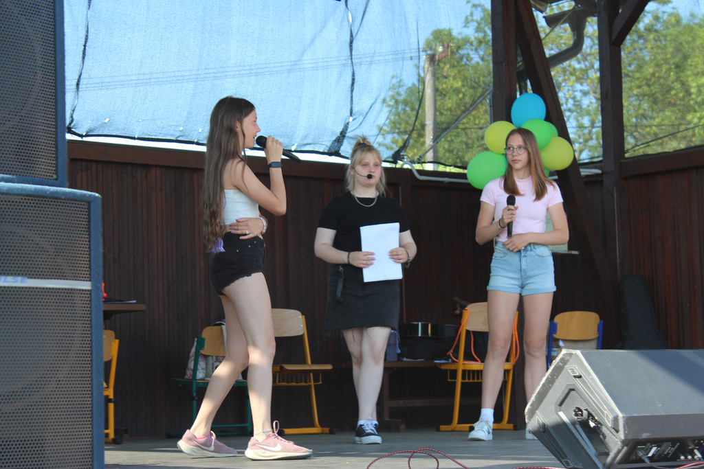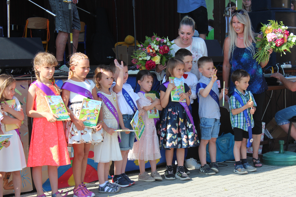 a jejich slavnostním stužkováním. Celým dnem nás provázela moderátorská trojice dívek z šesté třídy. Po celou dobu Školních slavností fungovalo výborné občerstvení, které si všichni velmi chválili. Celé odpoledne svítilo sluníčko a panovala příjemná atmosféra. Děkujeme žákům za krásná vystoupení a za pomoc, děkujeme panu Borůvkovi za skvělé nazvučení,