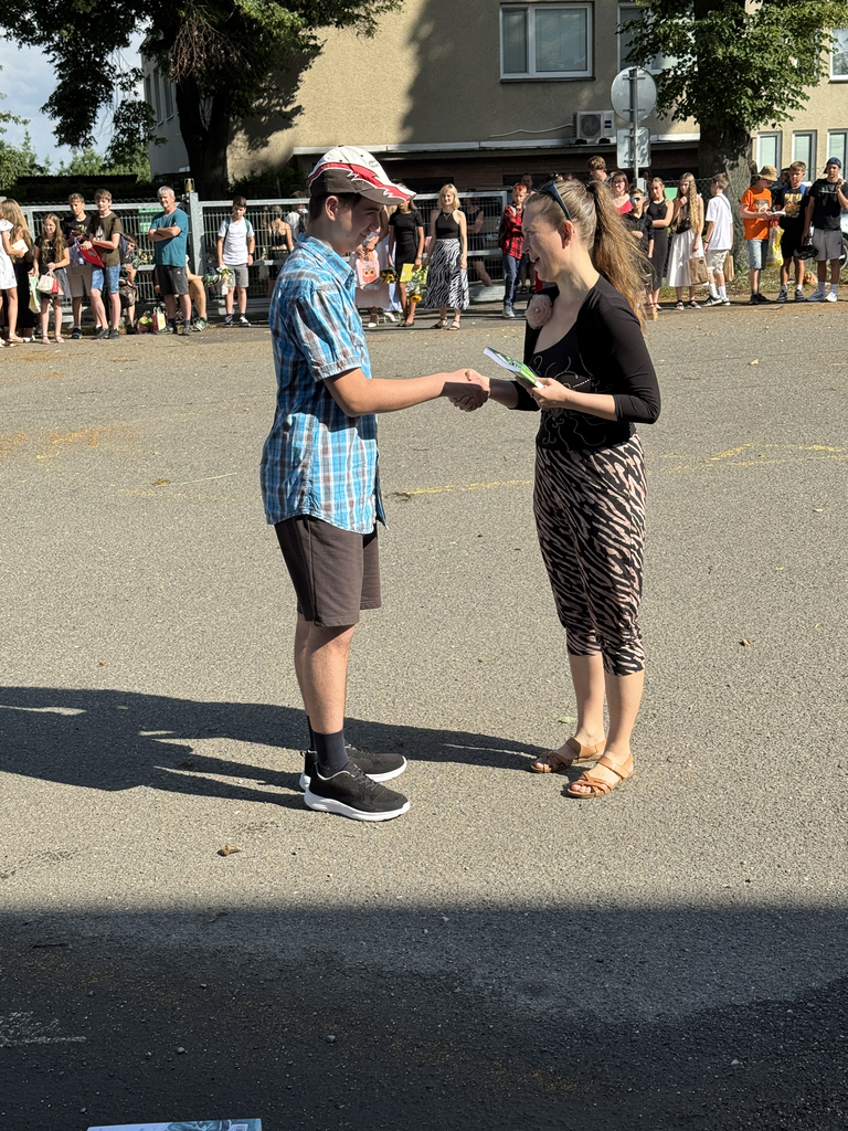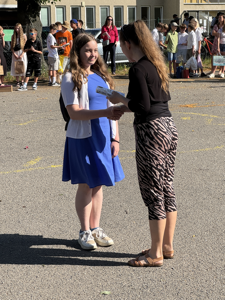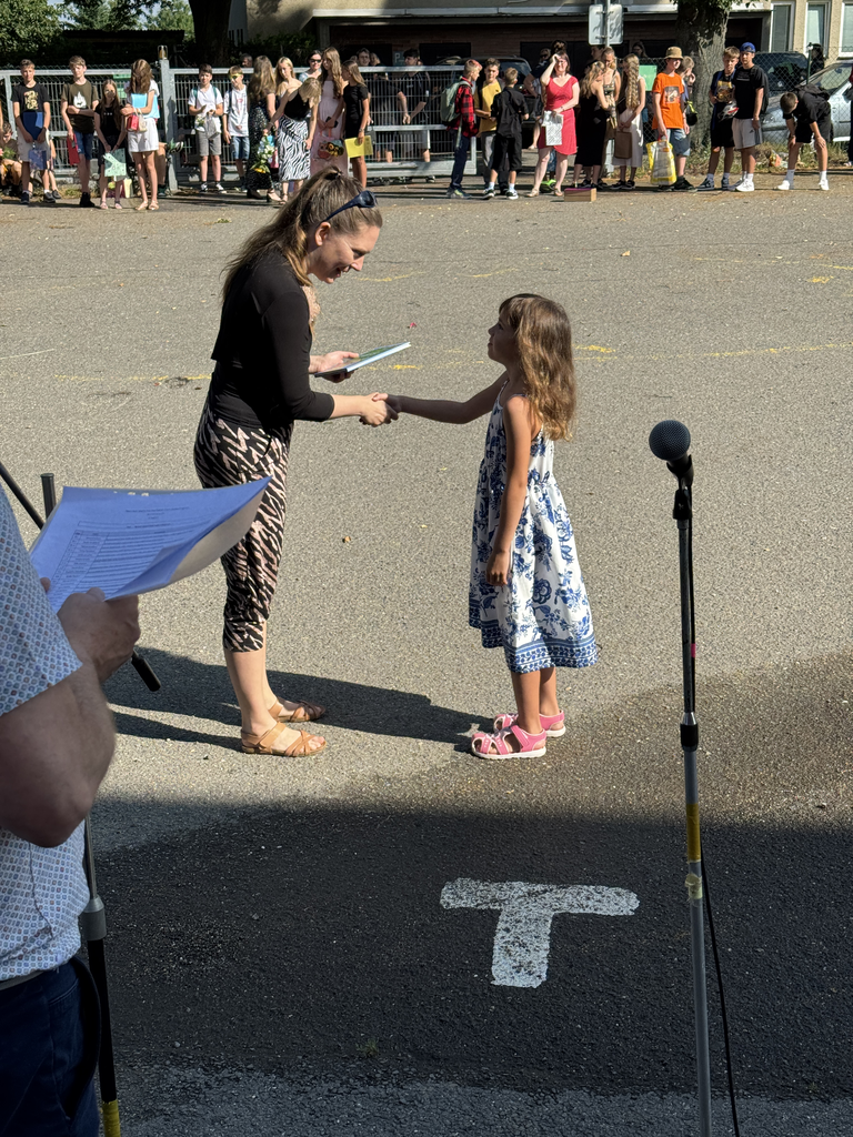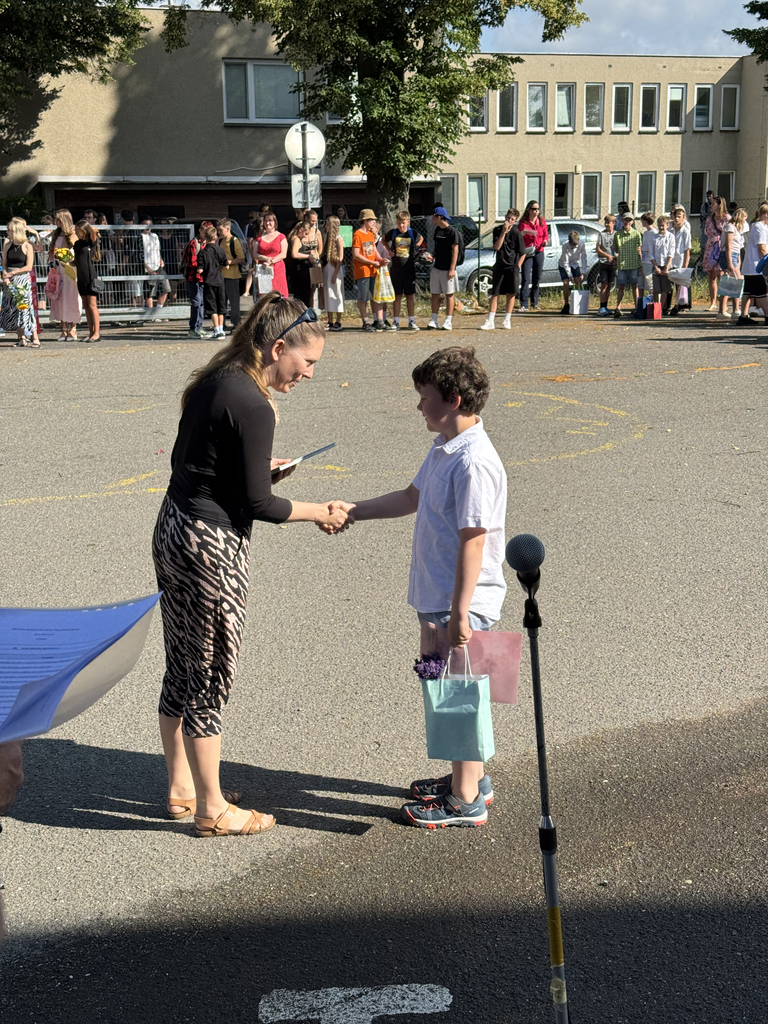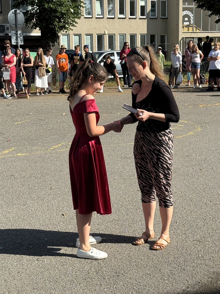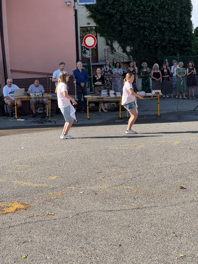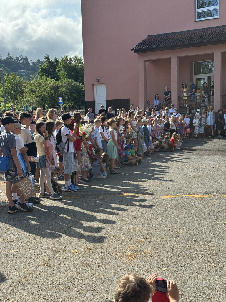 Dne 27. 6. 2025 proběhlo ve venkovním areálu školy tradiční ukončení školního roku. Žáci, kteří se pravidelně a dobrovolně účastnili školních akcí a soutěží byli oceněni knižními odměnami. Totéž se týkalo i žáků, kteří měli po celou dobu školní docházky výborné výsledky. S žáky se přišel rozloučit i pan starosta, který jim popřál krásné prázdniny a žákům 9. ročníků úspěšný start k jejich nové životní etapě na střední škole. Tento školní rok došlo i k zápisu do školní knihy cti a to konkrétně Barbory Dlabajové za příkladnou a dlouhodobou práci pro třídu a aktivitu při pořádání mnoha školních akcí.