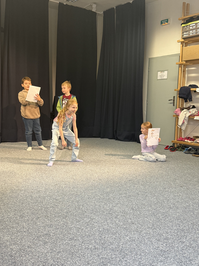 Dne 11. 11. 2025 se třída 3. A zúčastnila programu Spolu teď a tady v olomouckém Dramacentru. Žáci pracovali ve skupinách, učili se spolupráci, naslouchání a společnému vytváření. V úvodu si týmy vymýšlely vlastní bájné zvíře včetně příběhu a následně pokračovaly v dalších tvořivých a uvolňovacích aktivitách podporujících pozitivní klima ve třídě. Cestovali jsme veřejnou dopravou a celý program proběhl v příjemné, tvořivé atmosféře.
