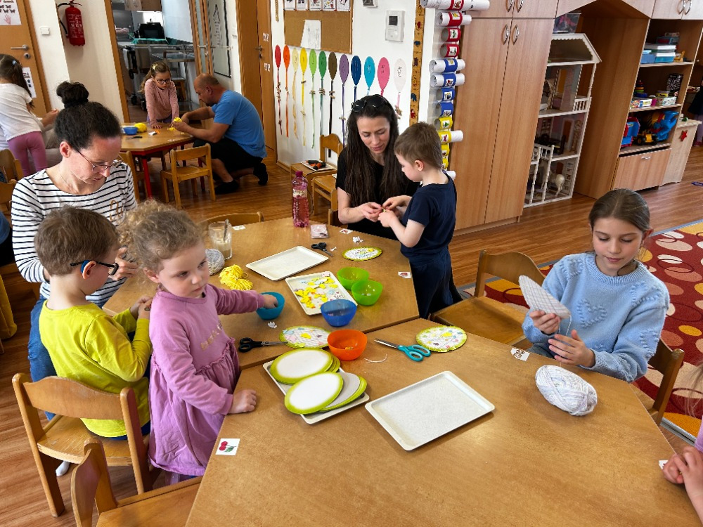 Jak je již zvykem, pořádáme s rodiči i velikonoční tvořivé dílničky. Tentokrát si rodiče s dětmi vytvořili výtvory z papíru – květinovou vázu, skládané zajíčky z papíru nebo i z dřívek, proplétané vajíčko či kuřátko z vlny. Dětem i rodičům šla práce krásně od ruky a vznikly krásné věci. Všem děkujeme za účast.