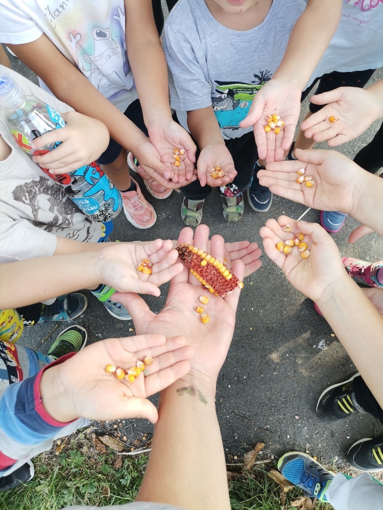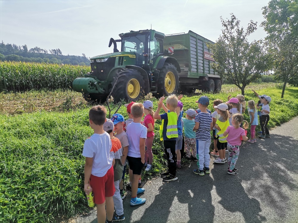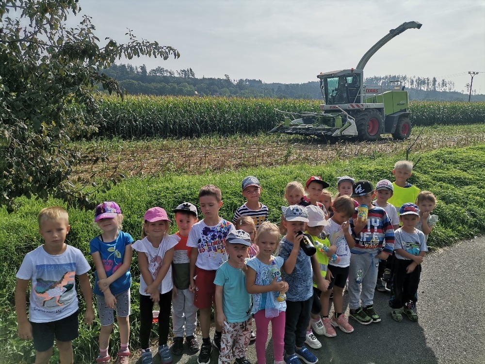 S dětmi jsme si společně vytvářely značky, hrály seznamovací hry a věnovaly jsme se tématu “Práce na poli.” Při vycházkách jsme pozorovali kombajny a traktory při práci, třídili různé druhy obilí a povídali si o plodinách, které najdeme na poli – slunečnice, kukuřice, řepa, brambory atd.
